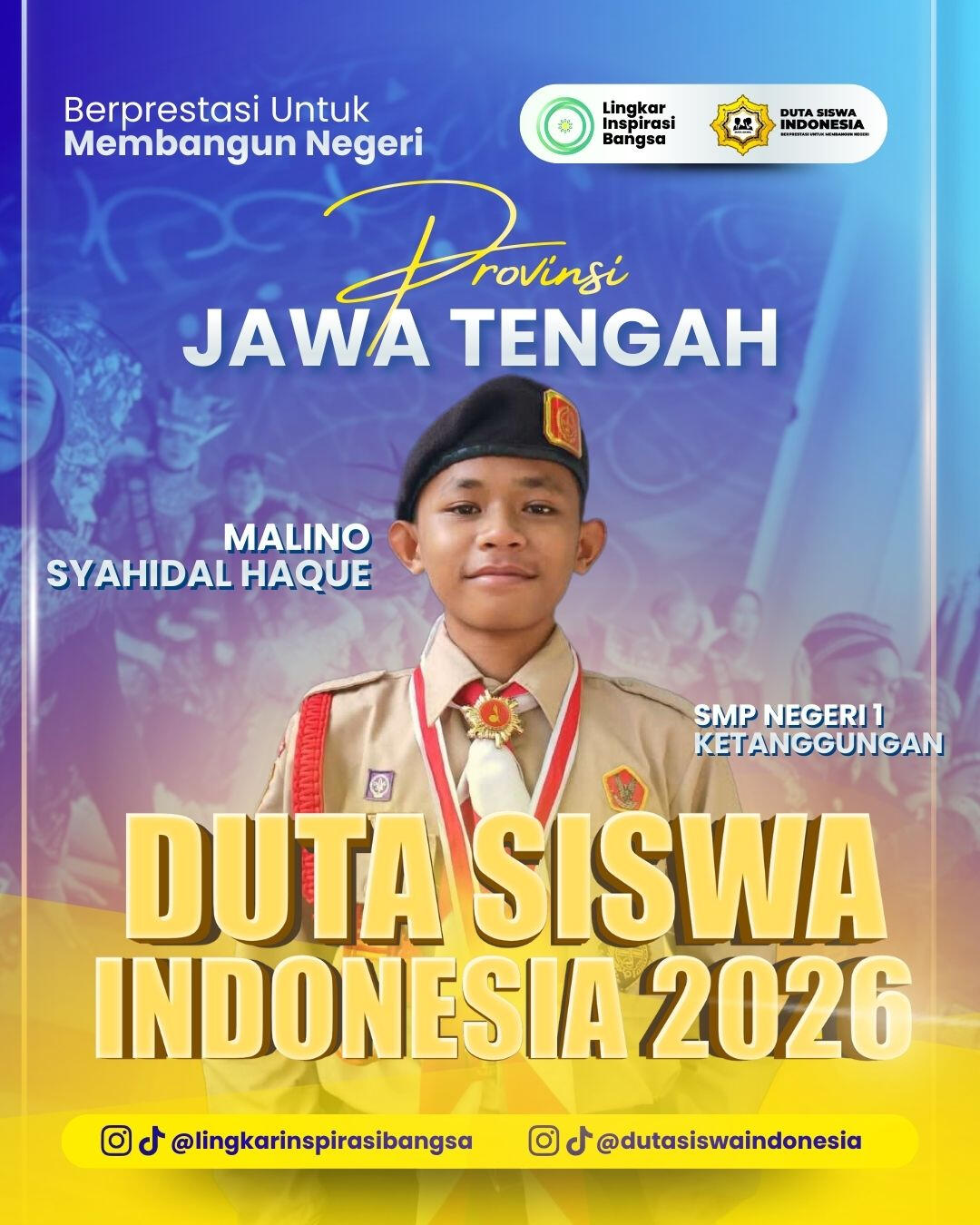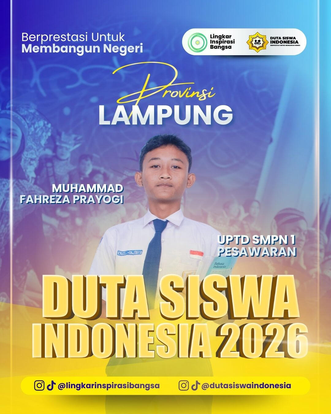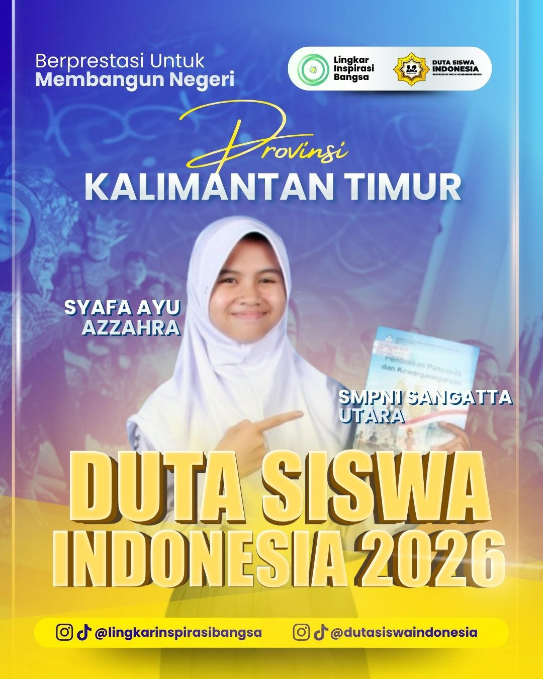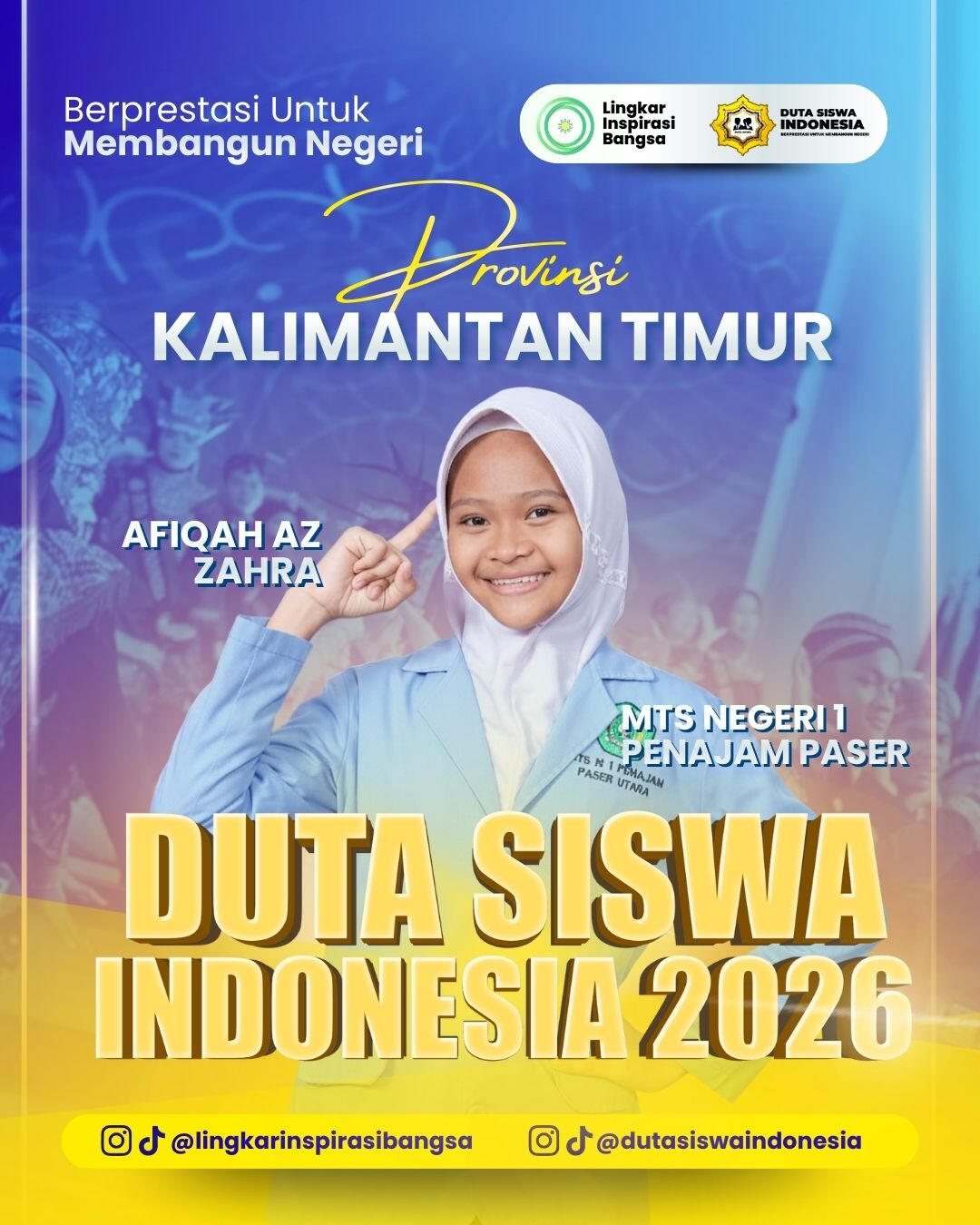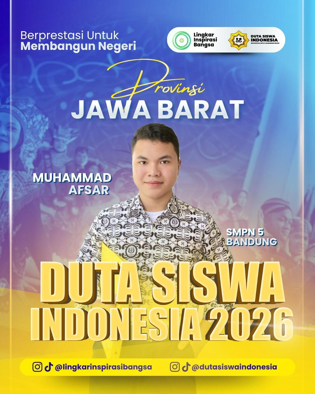 Uji Publik Individu = Setiap peserta wajib membuat video Tiktok atau Reels Instagram dengan tema “Kenapa Kamu Layak Menjadi Duta Siswa Indonesia 2026”