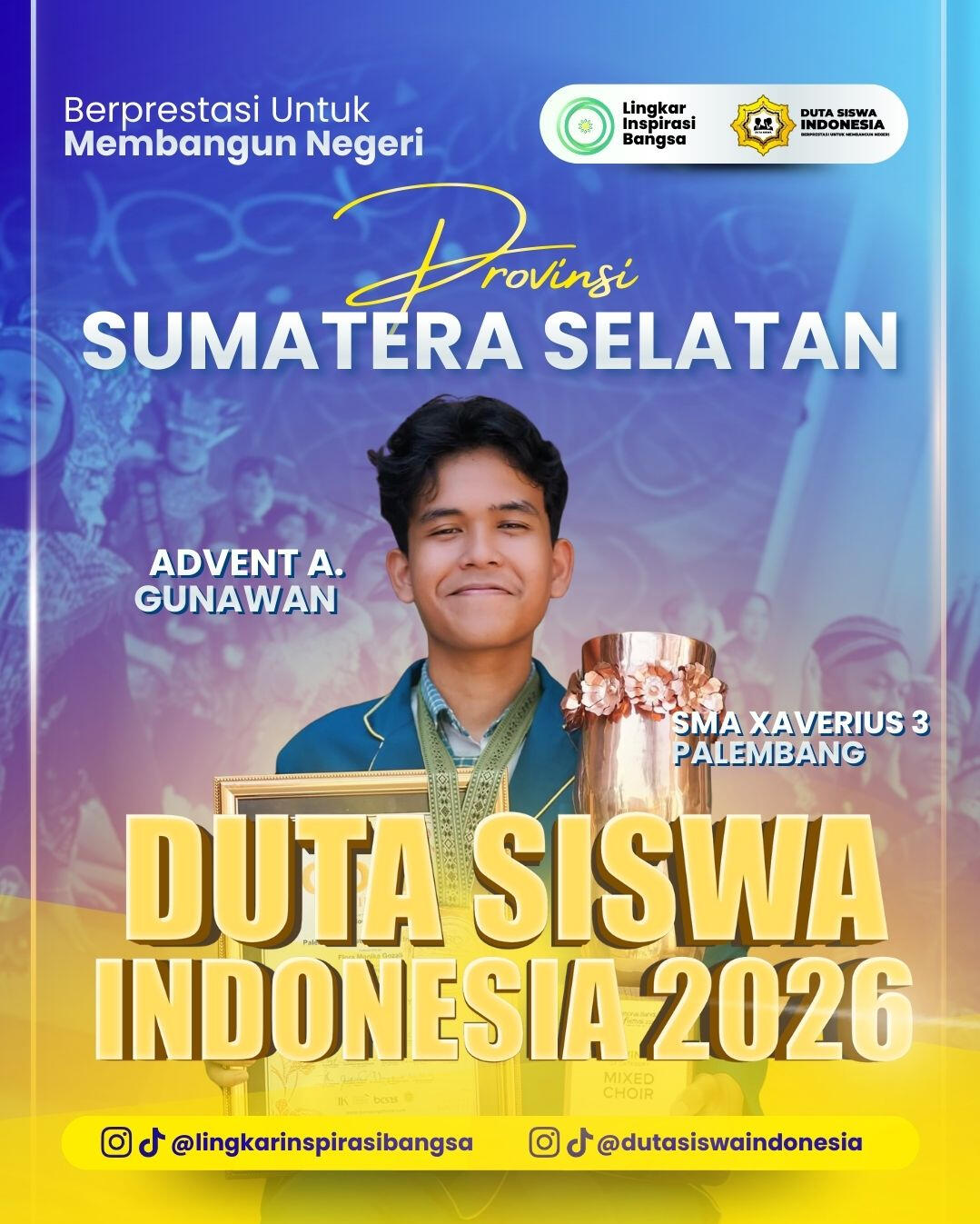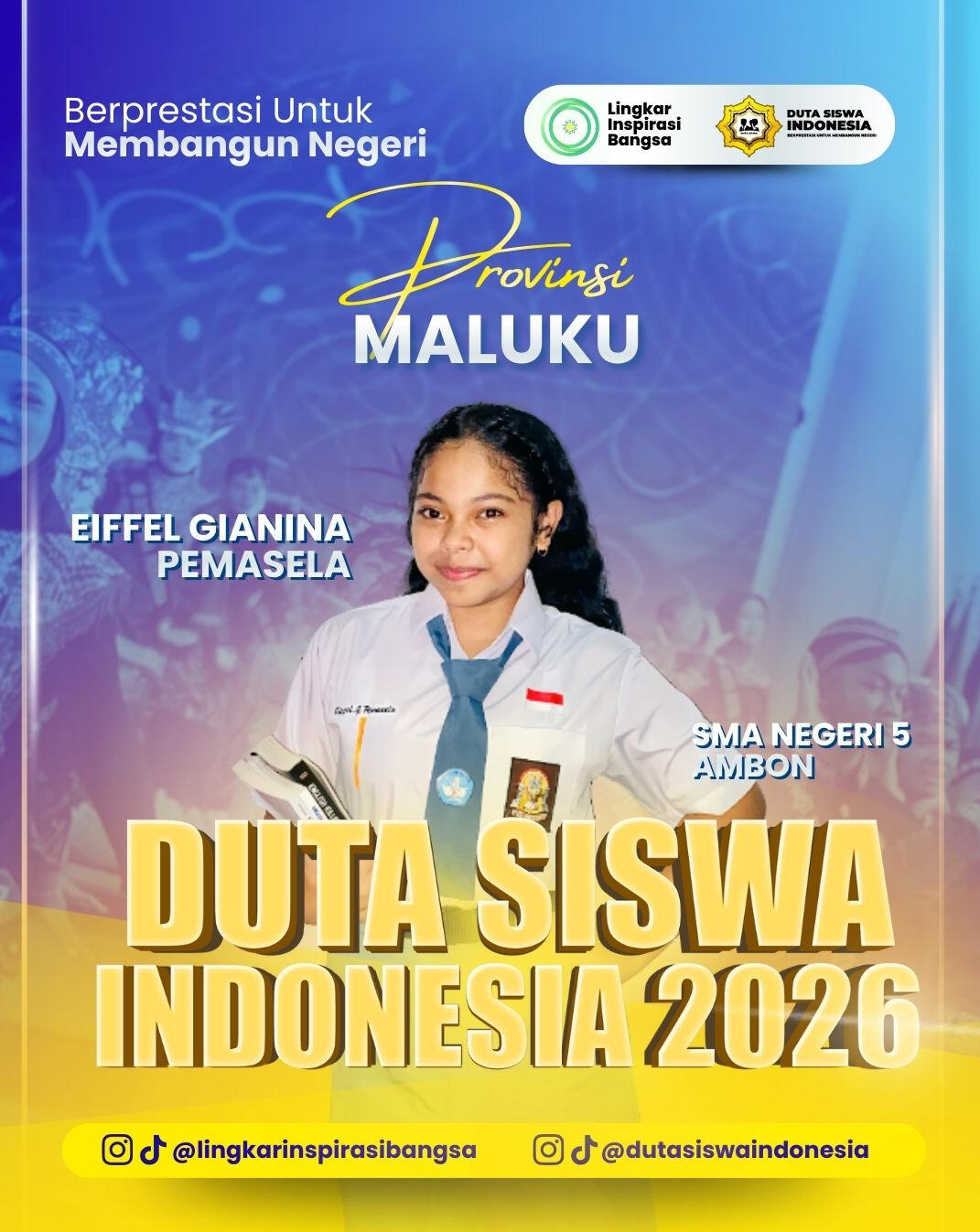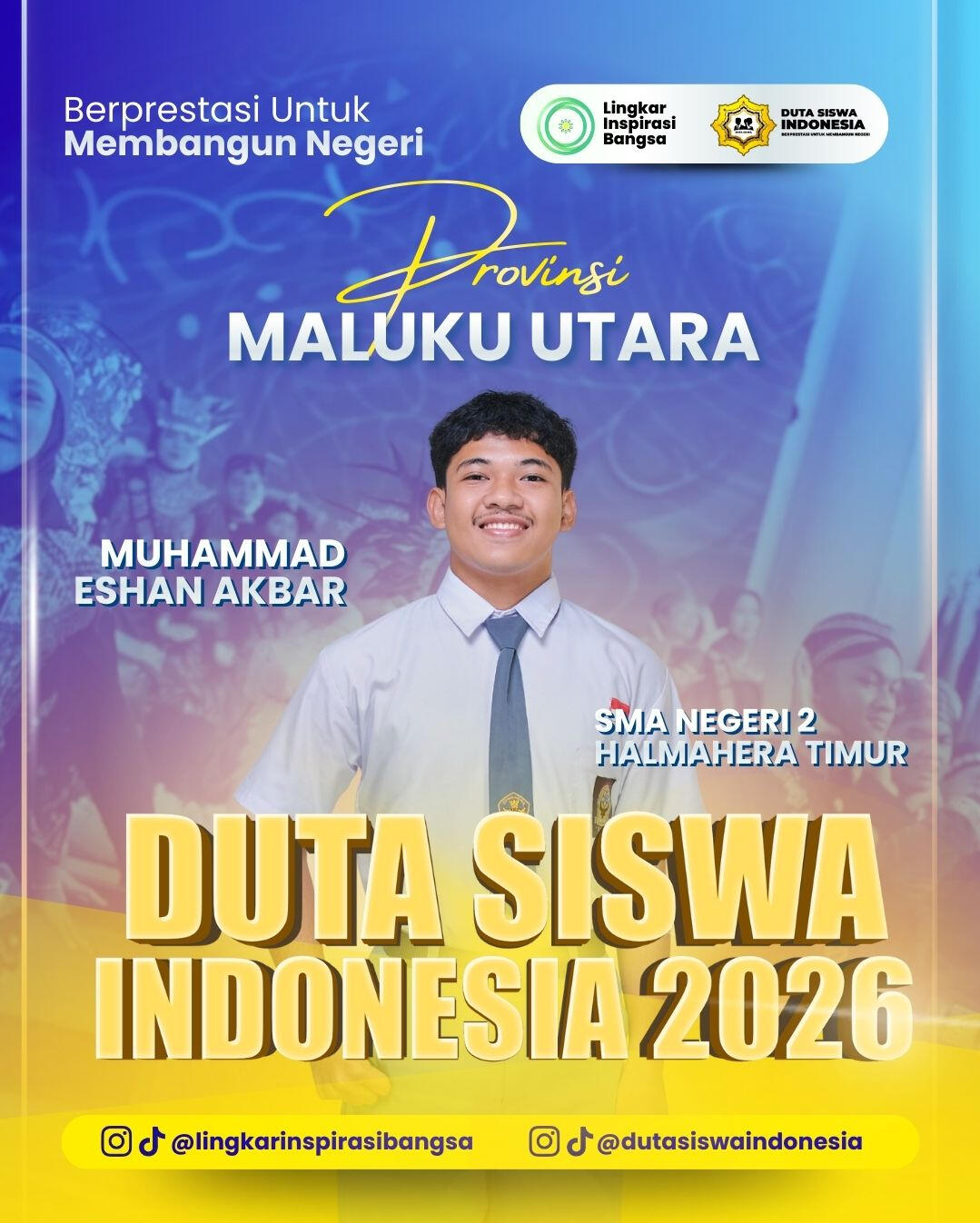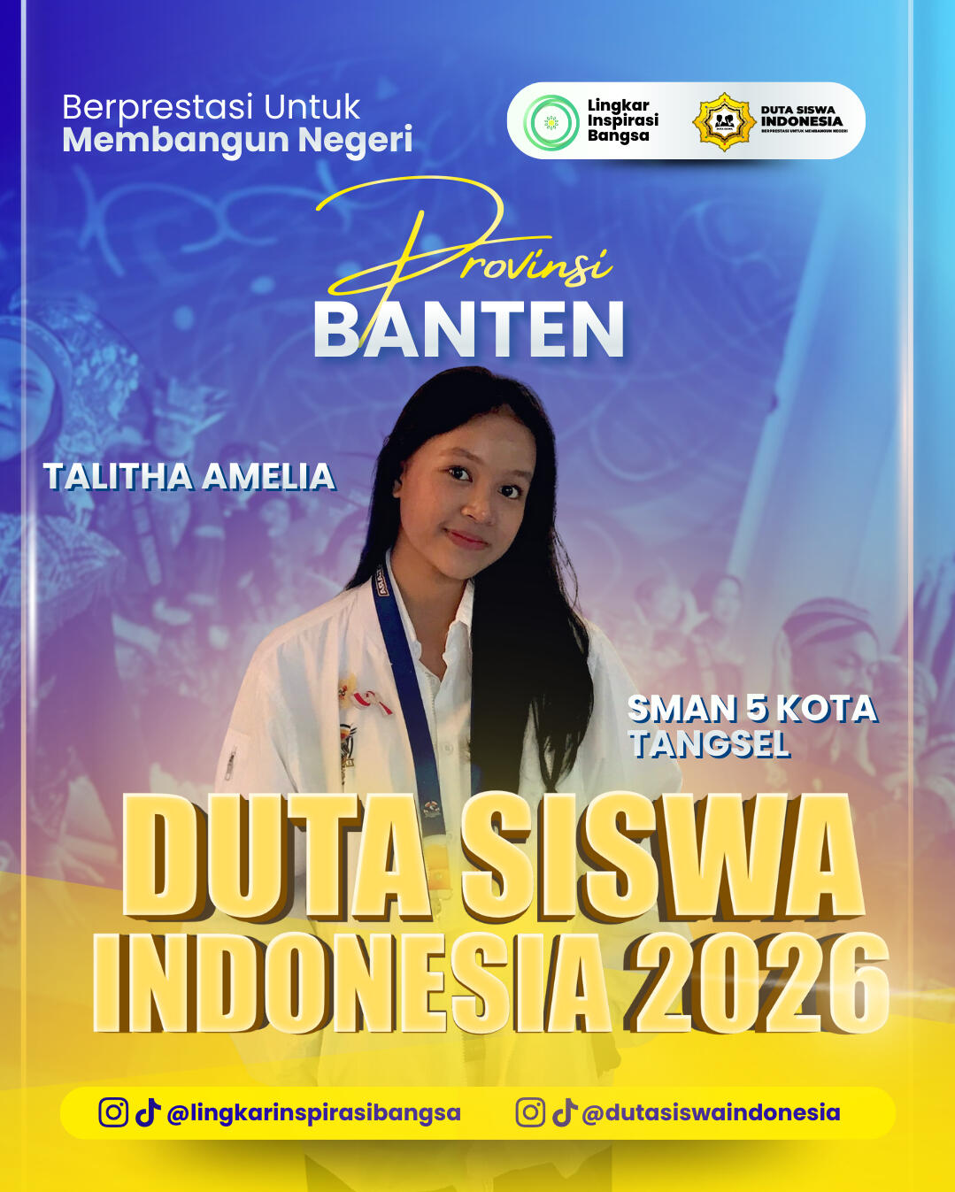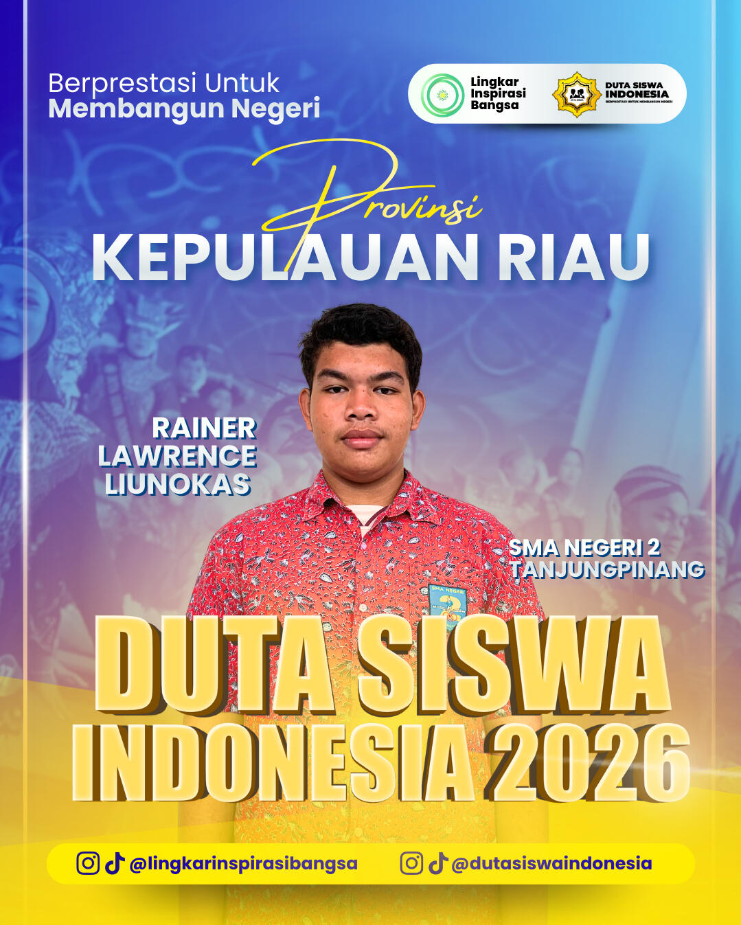 Selamat dan apresiasi setinggi-tingginya kepada para Grand Finalis Duta Siswa Indonesia 2026! Perjuangan kalian hingga tahap ini adalah bukti nyata dari ketekunan, keberanian, dan semangat untuk berkontribusi melalui inovasi digital. Terima kasih telah menjadi bagian dari perjalanan inspiratif ini. Mari rayakan pencapaian luar biasa ini dan bersiaplah menorehkan prestasi lebih tinggi di babak grand final!